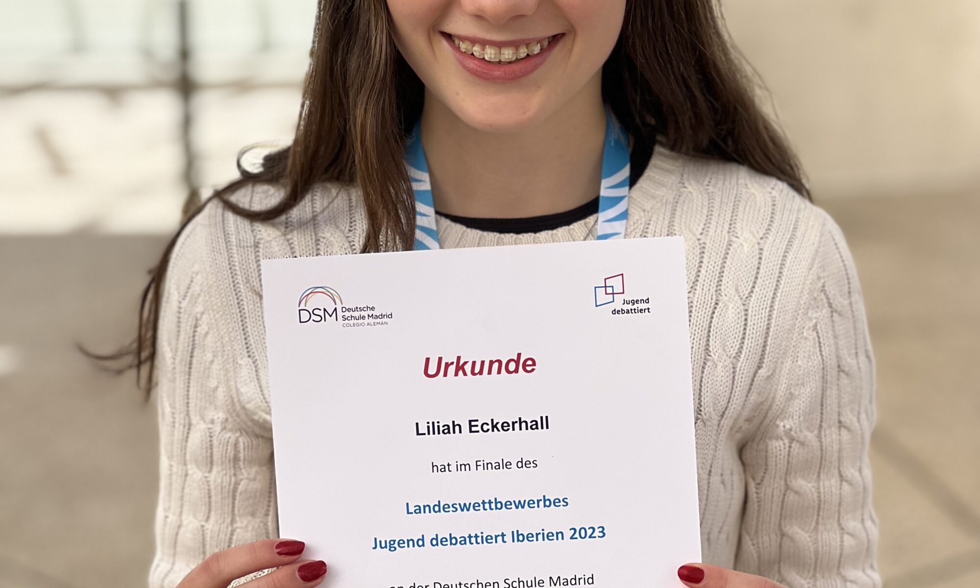 Wir gratulieren Liliah Eckerhall (09a) zum 3. Platz beim Finale am Landeswettbewerb Jugend Debattiert Iberien.